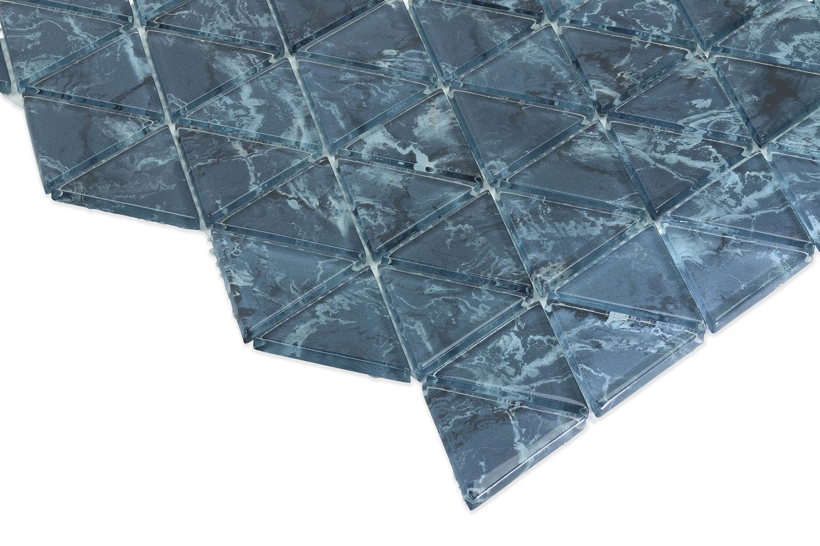 Deep Blue Geometry: Marble Look Glass Triangle Mosaic Tile – HXT 9835