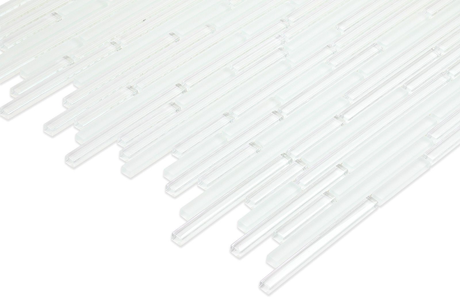 Linear Luminosity: White Iridescent Glass Stick Mosaic Tile – K8101